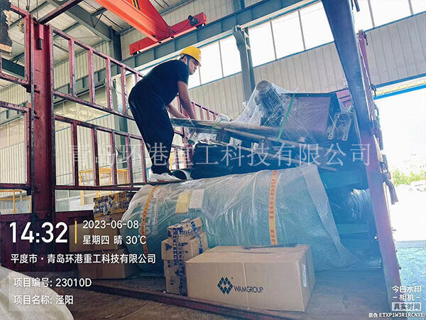 由環港生產的膩子粉生產線在生產部、質檢部、物流部的相互配合下完成后裝車工作,資深的裝配工人熟練的操作著,起吊、裝車、固定一氣呵成,確保每臺設備及時完好到達客戶項目現場。