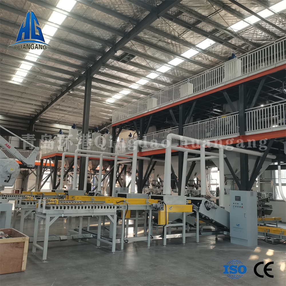 一、自動化程度高:通過總控系統,所有原料(包含添加劑)自動計量、自動輸送、自動混合、自動包裝、自動輸送、自動碼垛成型,整個生產過程沒有人工參與,大大降低人工成本。
