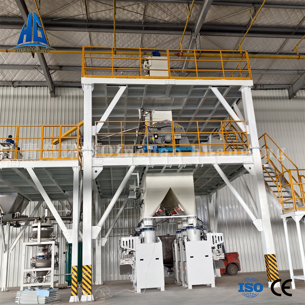 雙軸無重力混合機最大容積可達4000-8000L,雙軸轉速每分鐘55轉,相比于單軸混合機攪拌容積比較大,適合更大產量的散裝物料生產,能在180秒左右把計量好的砂子,水泥,石膏、粉煤灰、重鈣、灰鈣,外加劑等原材料充分翻合均勻,形成達到規定強度的成品物料,還使用了獨特的液壓開門結構,能使物料在10秒內卸料完成,出料殘余少,并且我們的混合機出料口設有分料器,可根據需要控制成品物料是送往包裝機進行袋裝或經過干粉送料螺旋送到散裝頭進行散裝。