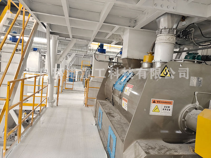 該生產線由儲料系統、輸送系統、稱重配料系統、混合系統、成品儲存系統、包裝系統、除塵系統和電控操作系統等組合而成。在秉承傳統干粉混合生產線運行穩定、計量精確、操控簡易的基礎上,采用頂部配料的方式,減少物料輸送行程,降低批次生產所需時間,提高產量。物料在整個生產流程中都在密封環境下進行,降低灰塵。再配備我公司生產的脈沖除塵器,大大改良生產環境,保證工作人員的身體健康。